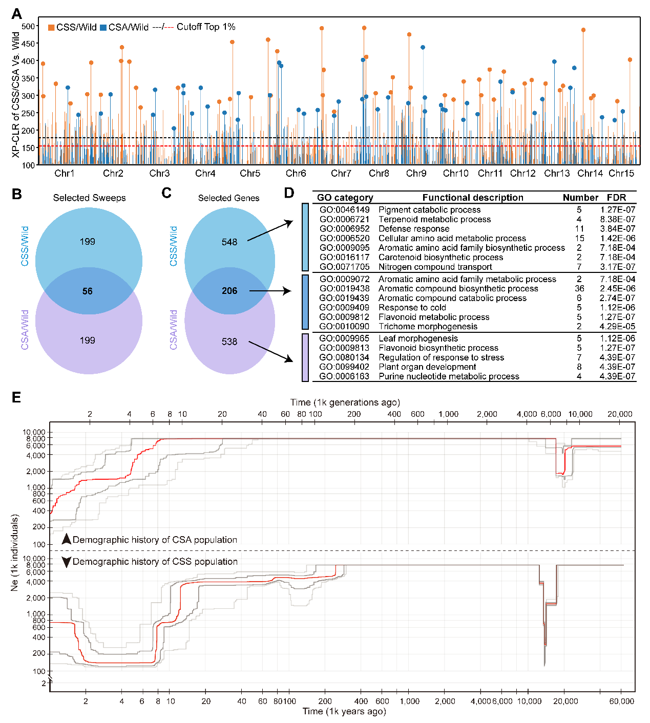 图2. 大叶茶和小叶茶的群体驯化选择特征