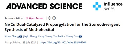 本网讯 近日,我校材料与化学学院常西浩教授在国际著名期刊《Advanced Science》(中科院一区,IF=14.3)上发表题为“Ni/Cu Dual-Catalyzed Propargylation for the Stereodivergent Synthesis of Methohexital”的研究性论文