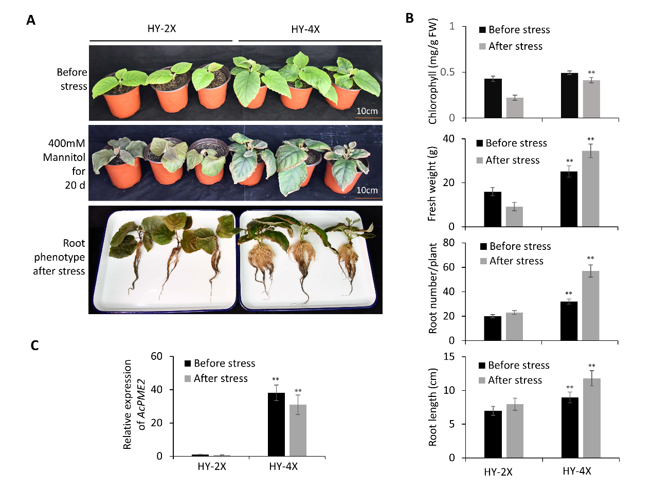 图1 四倍体猕猴桃生物量和抗逆性增加
