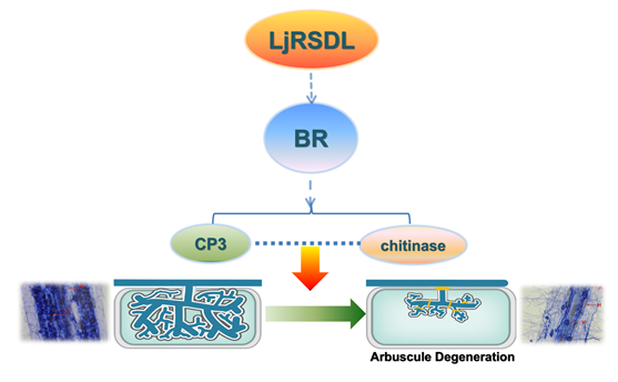 图2 LjRSDL调控菌根丛枝降解示意图