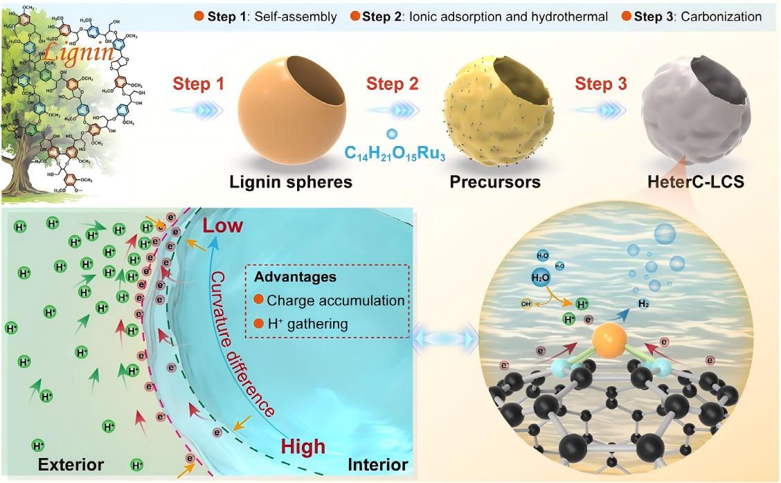 本网讯 近日,我校材料与化学学院熊福全教授团队在国际材料学顶刊《Advanced Materials》(中科院1区Top,IF=26.8)刊发林木生物质资源高值化利用方面最新研究成果,题为“Enhancing Field Effects of Single-Atom Ru/Lignin Carbon Nanoreactors for Electrocatalytic Hydrogen Evolution by Continuous Heterogeneous Curvature”。