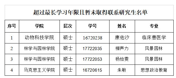 安徽农业大学关于公布超过最长学习年限且暂未取得联系研究生名单的公告