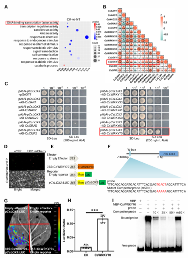图2. CsWRKY70直接激活CsLOX3表达
