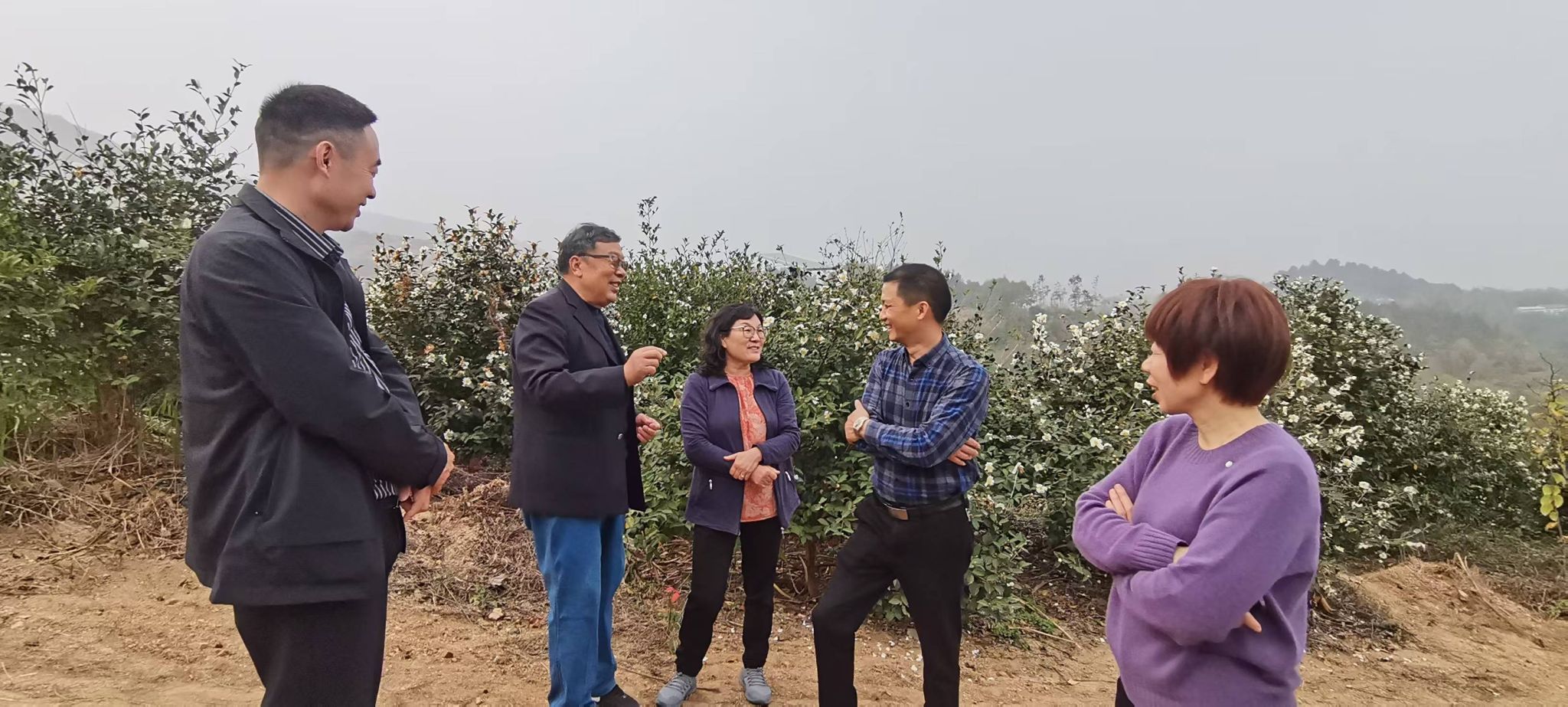 付万云老师对安徽富美达农业科技发展有限公司碧根果产品包装设计,从公司产品定位、企业用色体系等诸多设计元素方面提出了指导意见。专家组赴安徽新晟园林有限公司桐城市大关镇高岭村的油茶基地现场指导调整密度、修剪、高接换头改良品种、深施有机肥等提高油茶丰产技术。