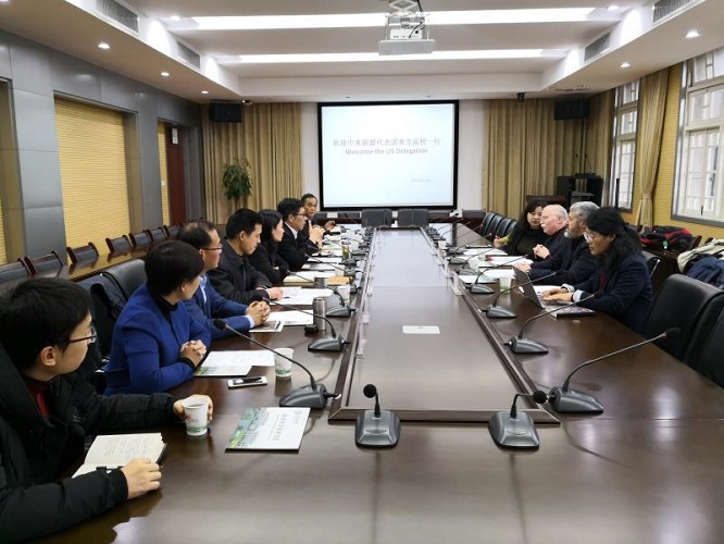 1月4日-7日,中美大学农业推广联盟美方代表团科罗拉多州立大学副校长卢·斯旺森、俄勒冈州立大学教授威利·汤普森等一行4人到我校进行交流访问。校长程备久、副校长姚佐文会见了美方代表团一行。新农村发展研究院、国际交流合作处负责人参加了相关交流商谈。