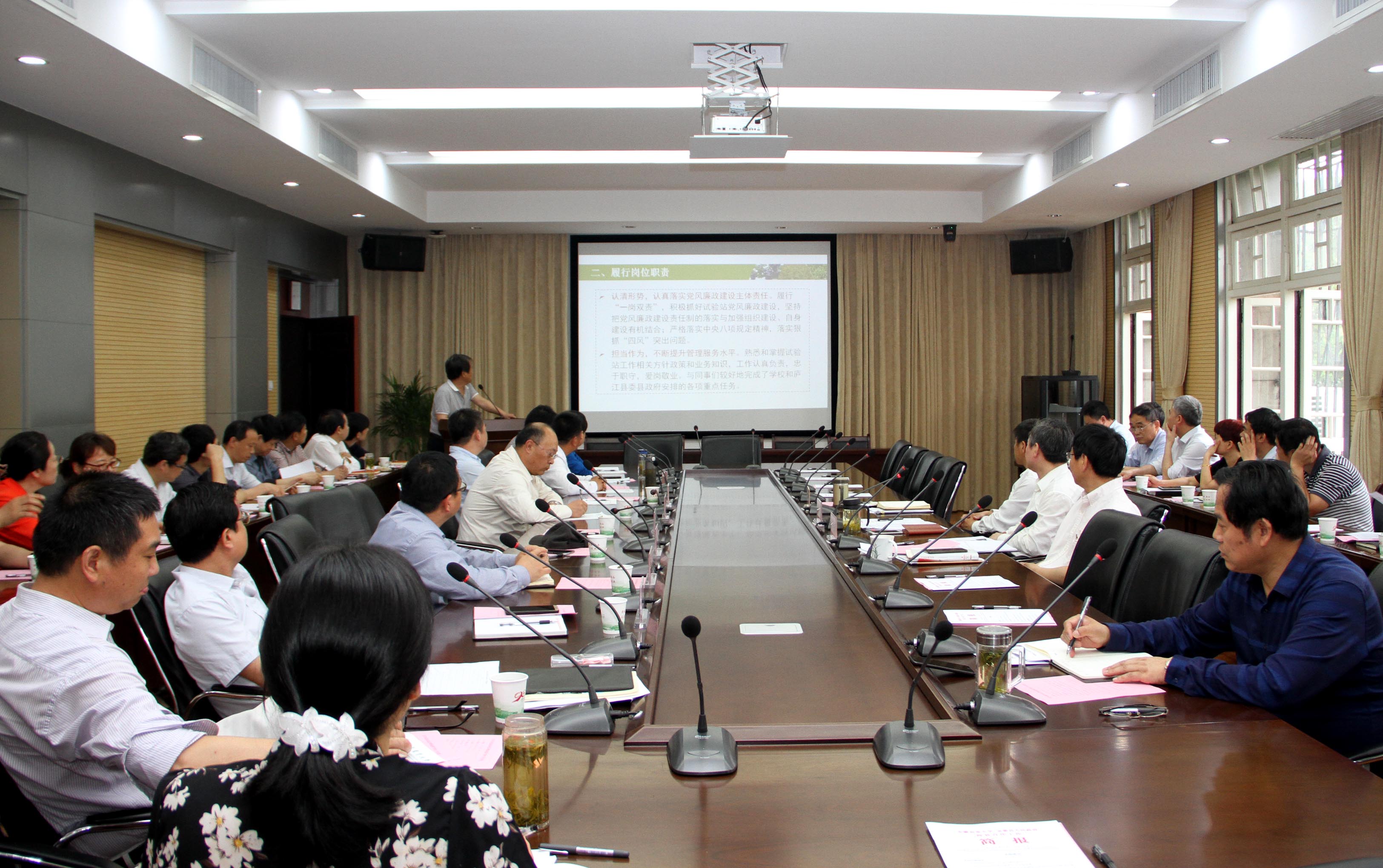 5月17日上午,校党委书记江春在校第三会议室,主持召开综合试验站站长任期届满考核工作现场述职会,校党委副书记裴树东,副校长马传喜出席了会议。