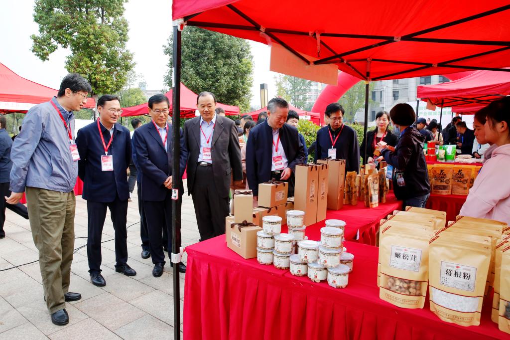 开幕式后,参会领导和嘉宾到各展销台前巡展。熙熙攘攘的展台前,教授带货,专家推介,购销两旺。
