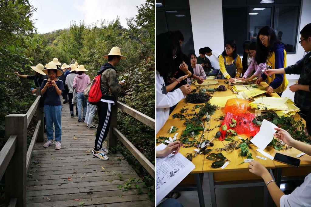 生命科学学院2018级生物制药专业学生在大别山站开展识别植物、制作标本实习