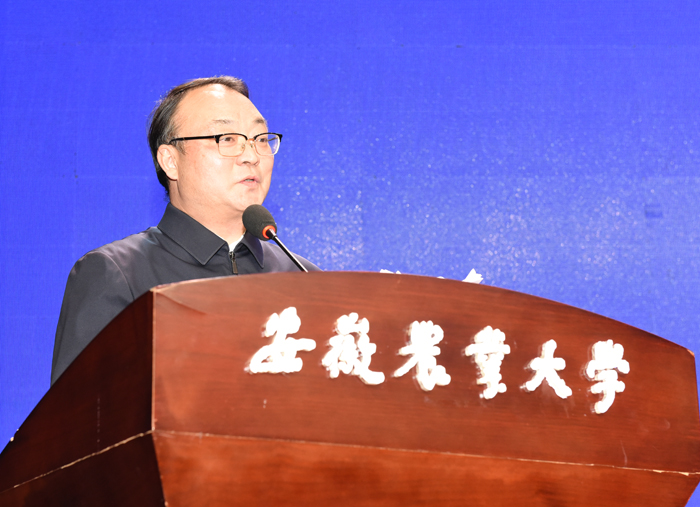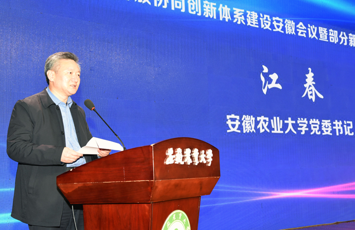 校党委书记江春在致辞中表示,将在农村中心、安徽省科技厅的指导支持下,紧紧依托“100+N”体系,围绕江淮平原农业产业特色,深化“一站一盟一中心”模式(综合实验站、现代农业产业联盟、现代农业产业科技创新中心),进一步完善新型大学农业推广体系,将学校打造成农业科技创新供给和成果转化的重要阵地,携手兄弟高校、科研院所、园区企业以及各类新型农业经营主体,为提升农业科技服务水平、支撑安徽农业农村高质量发展做出应有贡献。