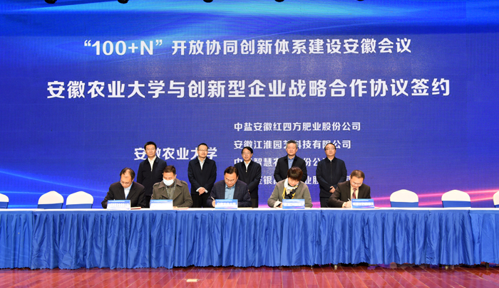 安徽省科技厅副厅长姚群在讲话中指出,省科技厅高度重视农业科技创新工作,积极推进“100+N”体系在安徽落地工作,下一步,将立足安徽实际,以“100+N”体系建设为契机,围绕推动长三角农业科技创新一体化发展,积极探索实践,走出一条创新驱动农业农村高质量发展的新路子,着力打造安徽农业科技社会化服务体系“升级版”。一是要坚持改革创新,以体制机制创新为突破口,推动政产学研用融合发展向长期化、系统化、实体化转变。二是要坚持融合发展,进一步推进科技和企业、产业、资本等各类创新元素有效融合。三是要坚持人才培养,深入推行科技特派员制度,大力实施科技特派员创新创业行动计划,为巩固脱贫成果、接续乡村振兴提供人才支撑。