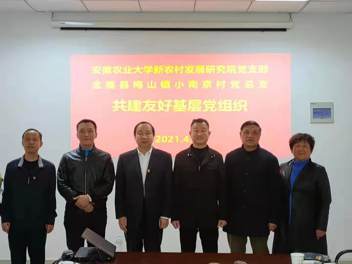 4月10日,机关党委新农村发展研究院党支部赴大别山试验站所在地金寨县梅山镇小南京村,与该村党总支结对共建友好基层党组织,并就共同推动党建与事业融合,高校与地方联动,助力实施乡村振兴战略,建设高质量的乡村振兴典型示范村召开座谈会。