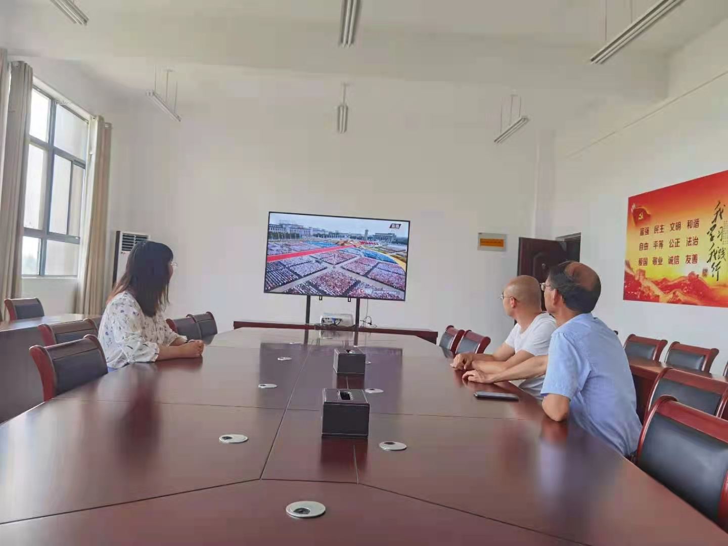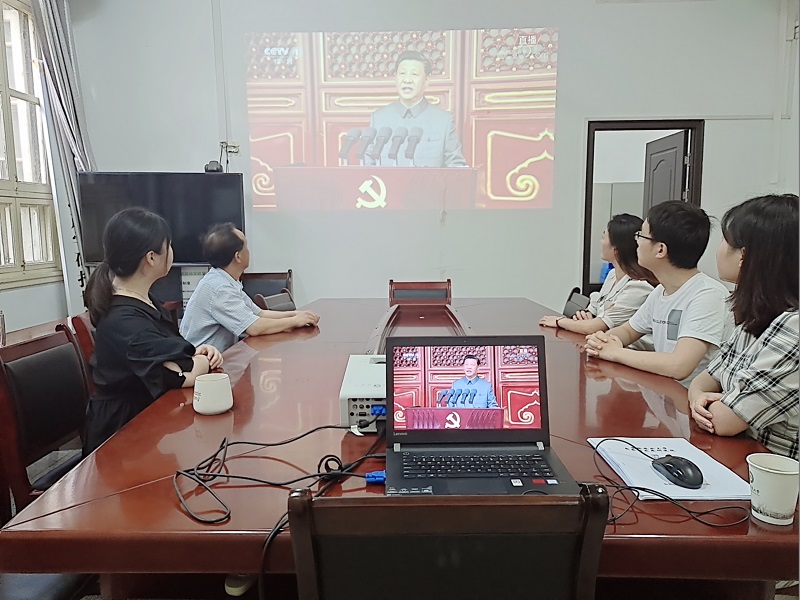 7月1日上午,庆祝中国共产党成立100周年大会在北京天安门广场隆重举行。中共中央总书记、国家主席、中央军委主席习近平发表重要讲话。8点,新农村发展研究院党支部组织全体党员职工准时集中观看大会盛况。