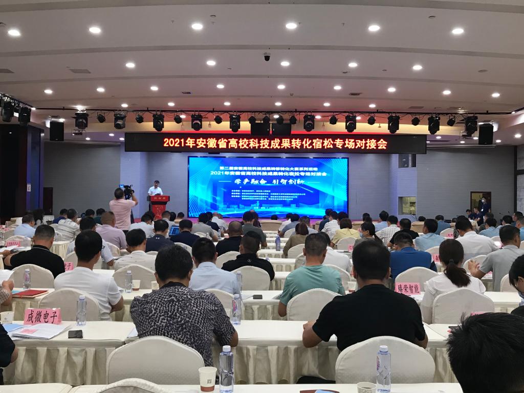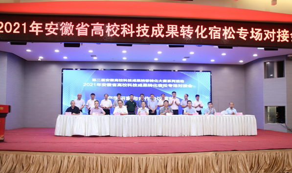 为推动安徽高校科技成果落地转化,推进省内高校与企业开展产学研合作,由省教育厅与宿松县人民政府主办的“2021年安徽省高校科技成果转化宿松专场对接会及成果展示活动”7月23日在宿松县举行。省教育厅二级巡视员许绪荣、省科技成果转化促进中心副主任陈龙胜、宿松县人民政府县长曹晓革等出席会议。我校及省内其他高校科技成果转化职能部门负责人和相关专家参加对接会。