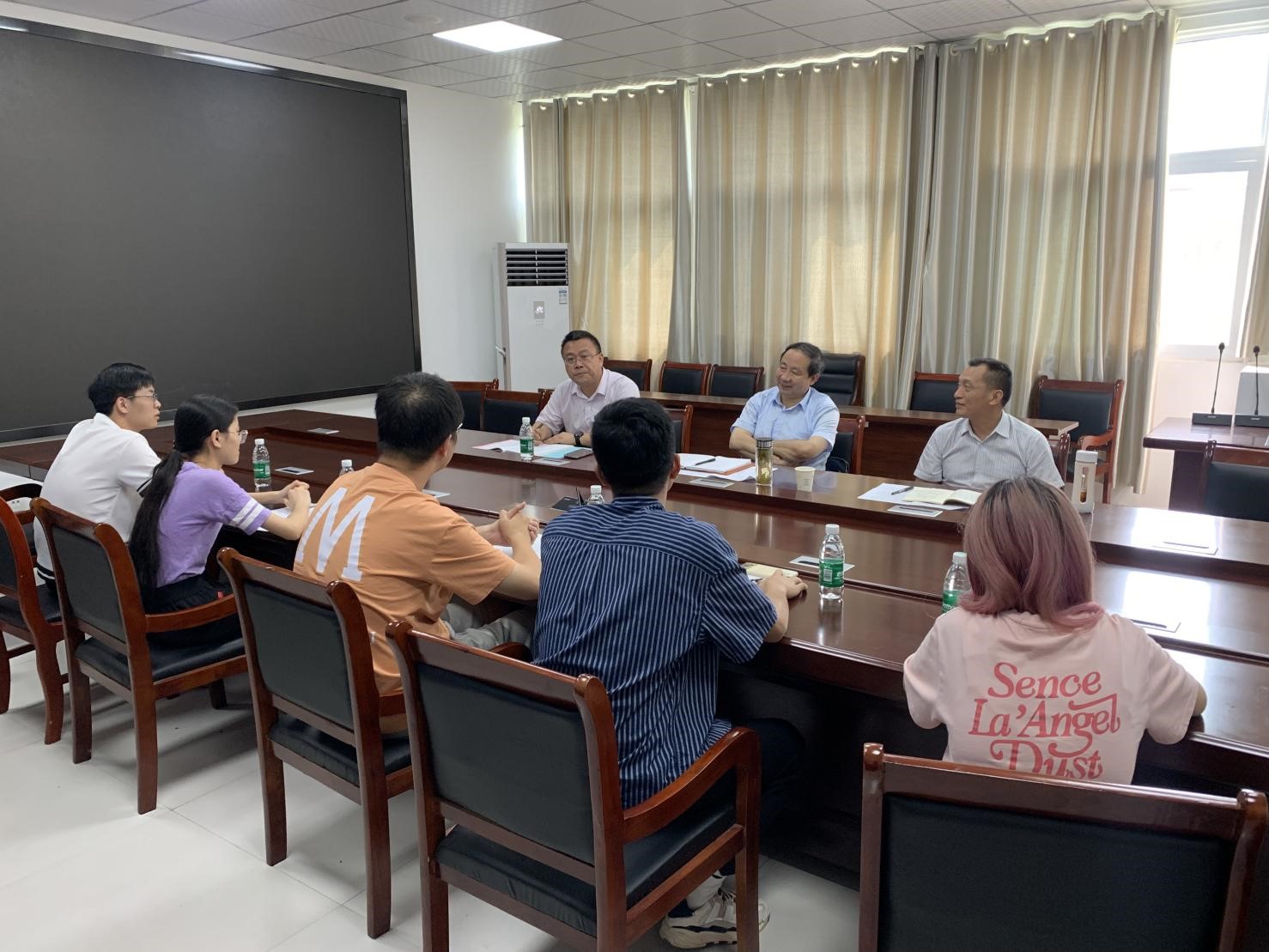 会后,新农院负责同志一行看望慰问了暑期进站实习的生命科学学院、植物保护学院的本科生,并与实习生代表在会议室进行亲切交谈。在听取了驻站实习生关于试验站生产实习活动开展的情况汇报后,对暑期驻站实习生的踏实认真、吃苦耐劳、力争上游精神表示称赞,并要求试验站在严格做好疫情防控的同时充分发挥自身优势,整合试验站及产业联盟服务对象实习资源,高质量完成人才培养工作。