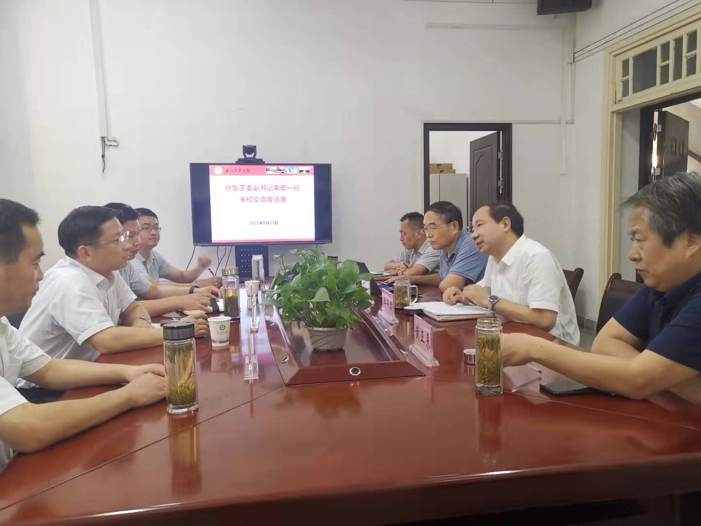 9月17日下午,叶集区委副书记朱宏一行来校对接校区战略合作事宜。叶集区政协副主席兼农业农村局局长、新农村发展研究院黄正来、王华斌副院长参加座谈会。会议由新农村发展研究院常务副院长王华君主持。