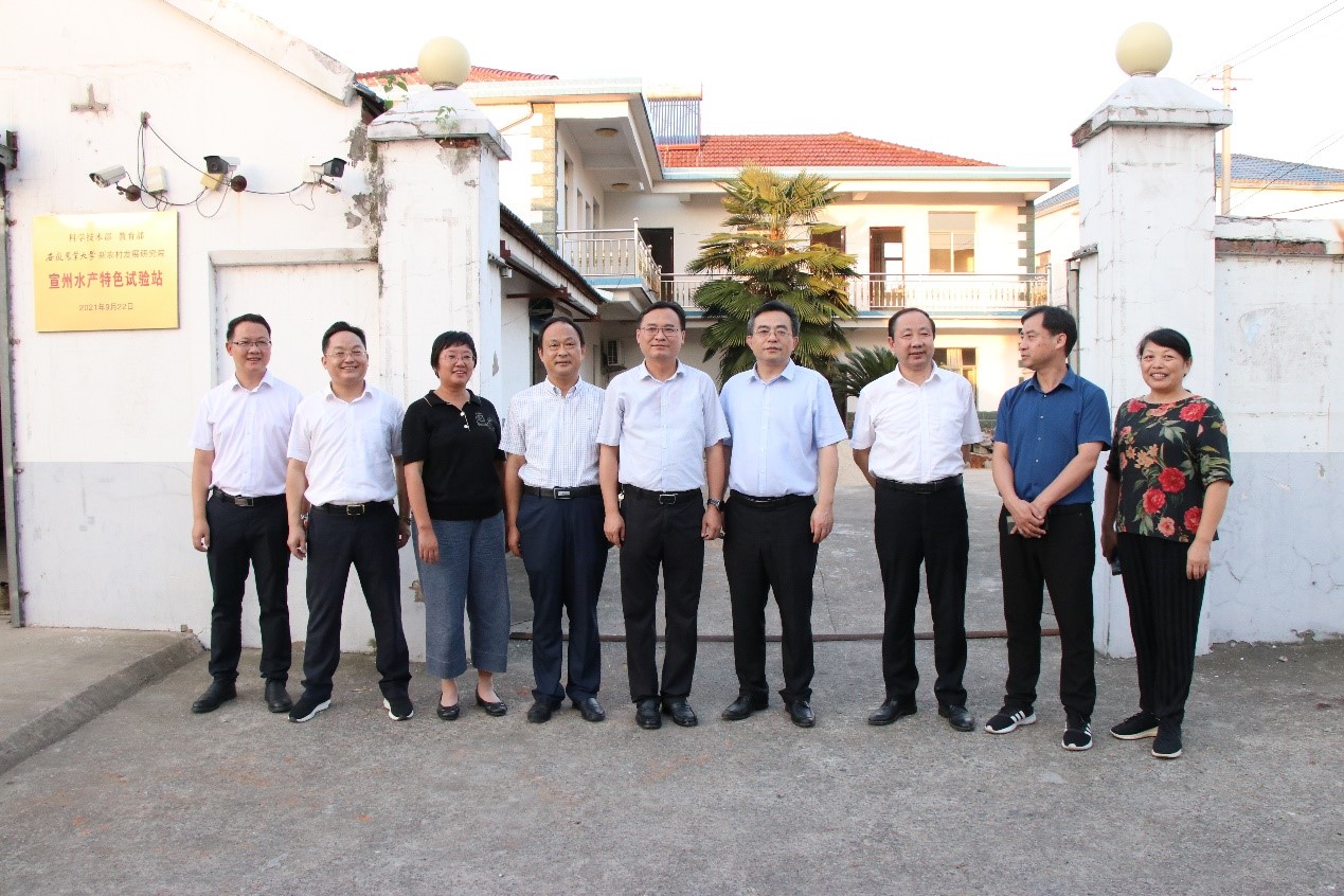 当天下午,副校长操海群一行考察了宣州水产特色试验站试验示范基地。科技处、新农村发展研究院、研究生院等单位负责人、我校相关专家参加上述活动。