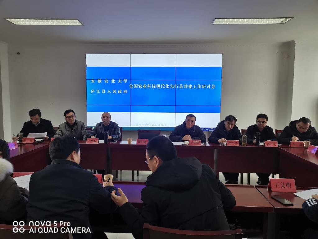 本网讯 2月16日,新农院副院长黄正来、副院长王华斌一行赴皖中综合试验站调研指导庐江县产业联盟及全国农业科技现代化先行县共建工作。庐江县农业农村局局长李杰峰,庐江县供销社、庐江县林园中心等部门及皖中综合试验站负责同志,相关产业联盟首席专家出席座谈会。