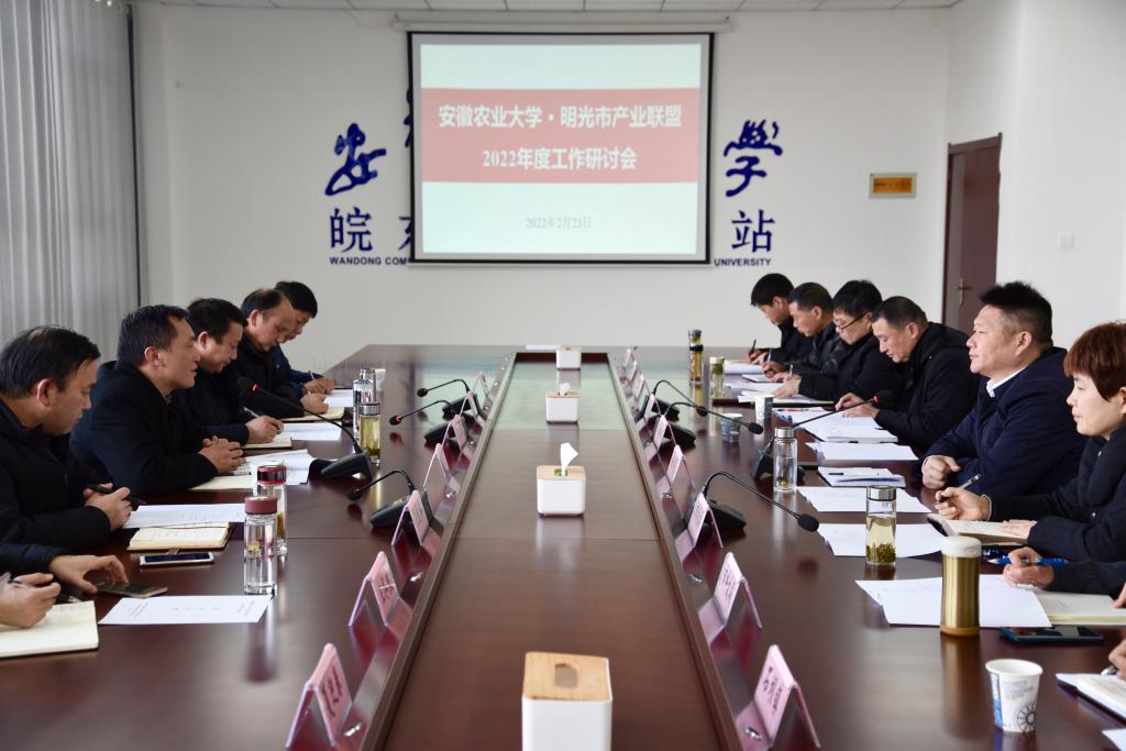 本网讯 2月23日,新农院副院长王华斌一行赴皖东综合试验站调研指导产业联盟工作。明光市委副书记杨明乐主持会议并讲话,市农业农村局、财政局、科技局、石坝镇等单位主要负责同志,皖东综合试验站负责同志、校市产业联盟专家出席座谈会。